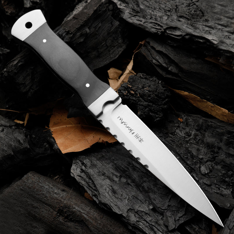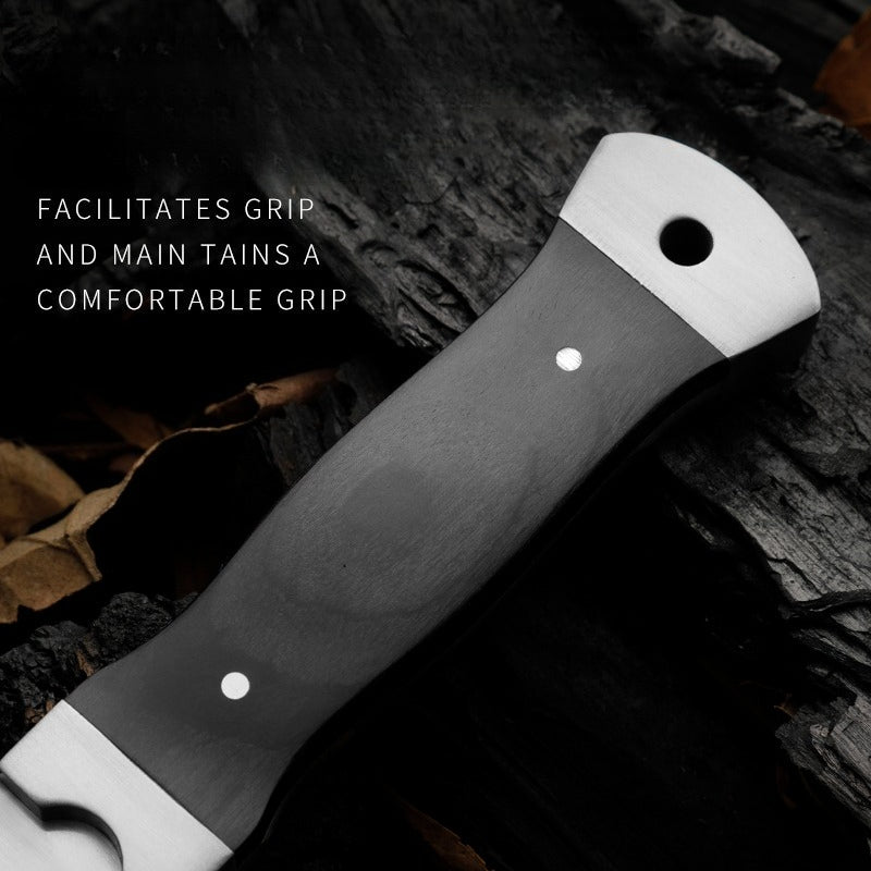 Outdoor 9Cr18 Steel Tool with Double Steel Head and Ebony Handle