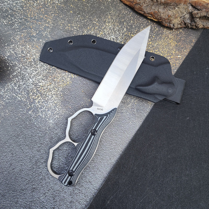 Outdoor Survival Knife with Dual Heart Knuckle Duster and Protective Sheath